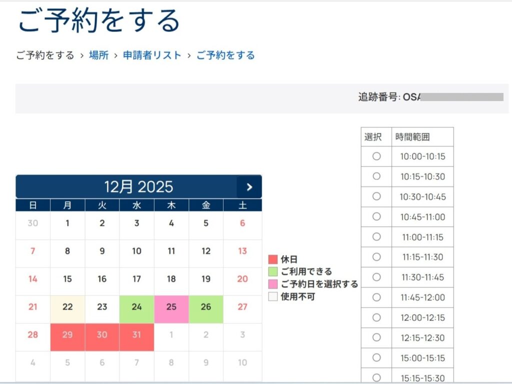 *基本的に土日&祝祭日はビザセンターがお休みのため、平日にアポイントメントの都合をつける必要があります。